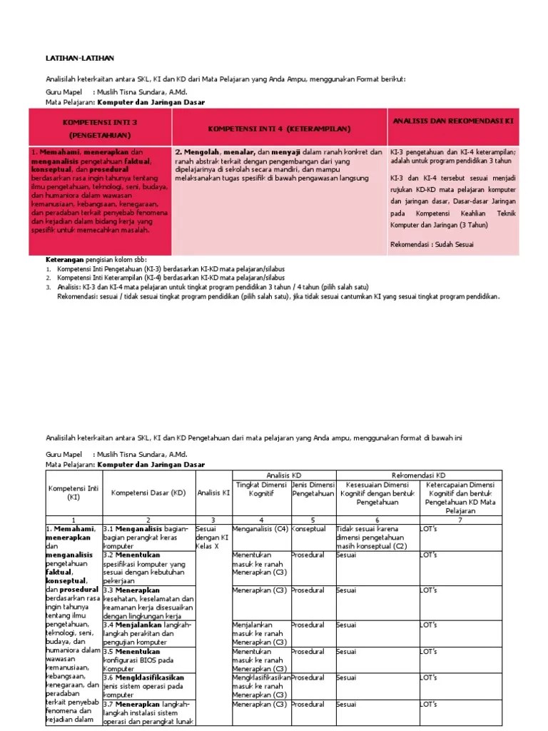 Budaya, dan humaniora dalam wawasan. Analisis skl, ki dan kd pemogramandasar teknik komputer dan jaringan k13 . Pemetaan kompetensi > kalender pendidikan > silabus pembelajaran > program tahunan > analisis alokasi waktu > analisis skl ki kd > rpp inspiratif daftar . Wahyu sri ningsih | category: Analisis keterkaitan ranah antara skl, ki,. Entri ini ditulis di perangkat guru pada 9 juli 2018 oleh sijangeks. Kompetensi inti dan kompetensi dasar sekolah menengah atas/madrasah aliyah/sekolah menengah kejuruan/madrasah aliyah kejuruan (sma/ma/smk/mak) paket . Analisis skl, ki dan kd komputer dan jaringan dasar. 72 jp ( 4 jp x 18 minggu efektif). Kompetensi inti dan kompetensi dasar. Mata pelajaran komputer dan jaringan dasar analisis dan. 2 3.1memahami konsep jaringan komputer. Analisis skl, ki dan kd.